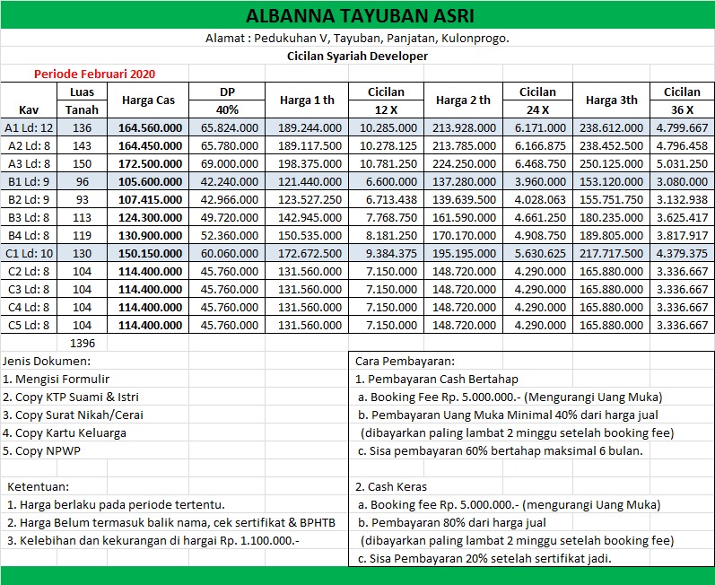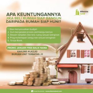 – Kredit Tanah dengan DP 30%, sedang unit rumah dg DP 10%