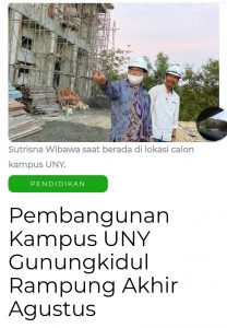 Untuk memfasilitasi warga sekitar, Universitas Negeri Yogyakarta (UNY), pada 21 Februari 2020 sudah mealkukan grounbreaking pembangunan kampus di Gunungkidul, tepatnya di Desa Pacarejo, Kecamatan Semanu.
