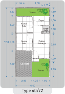 – Luas tanag bervariasi mulai 72m – 76m