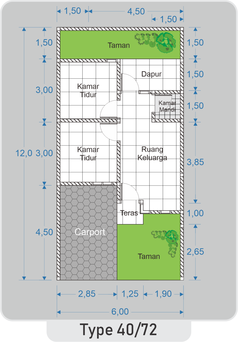 – Rangka Atap : Baja Ringan/Kayu (Opsional)