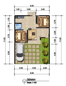 – Carport, ruang tamu, dapur, teras