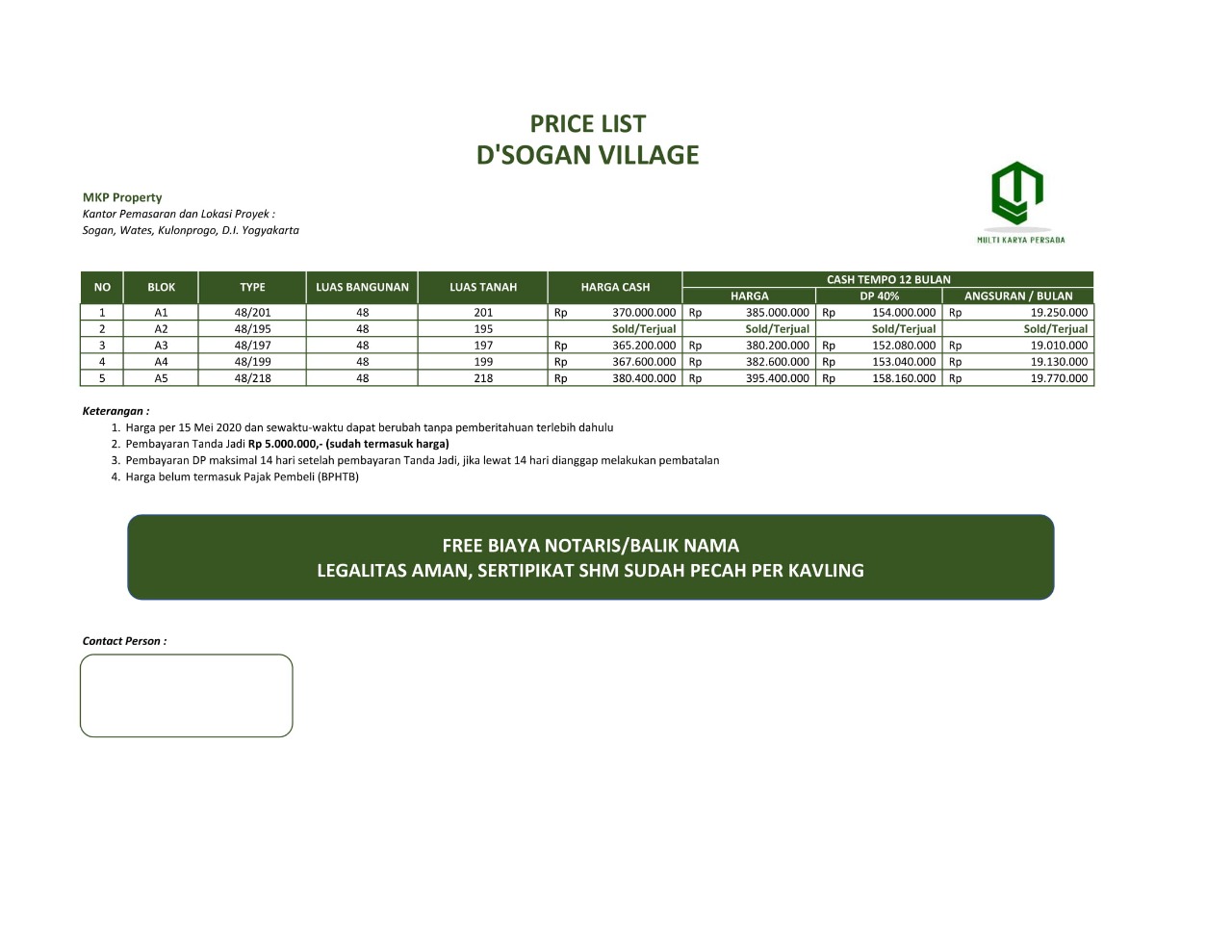 – Pembayaran DP maksimal 14 hari setelah boking unit, lebih dari itu diangap pembatalan