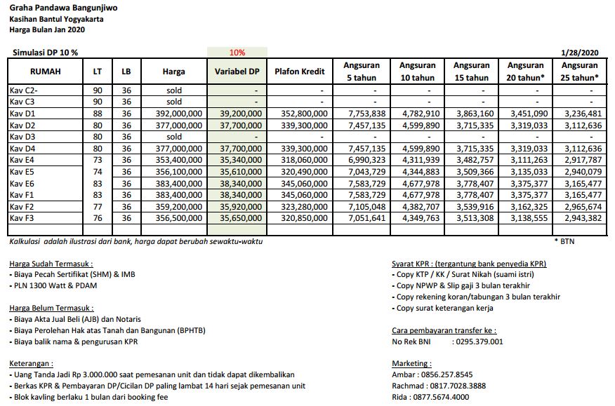 – Harga belum termasuk + Notaris, BPHTB, BBN dan Administrasi KPR