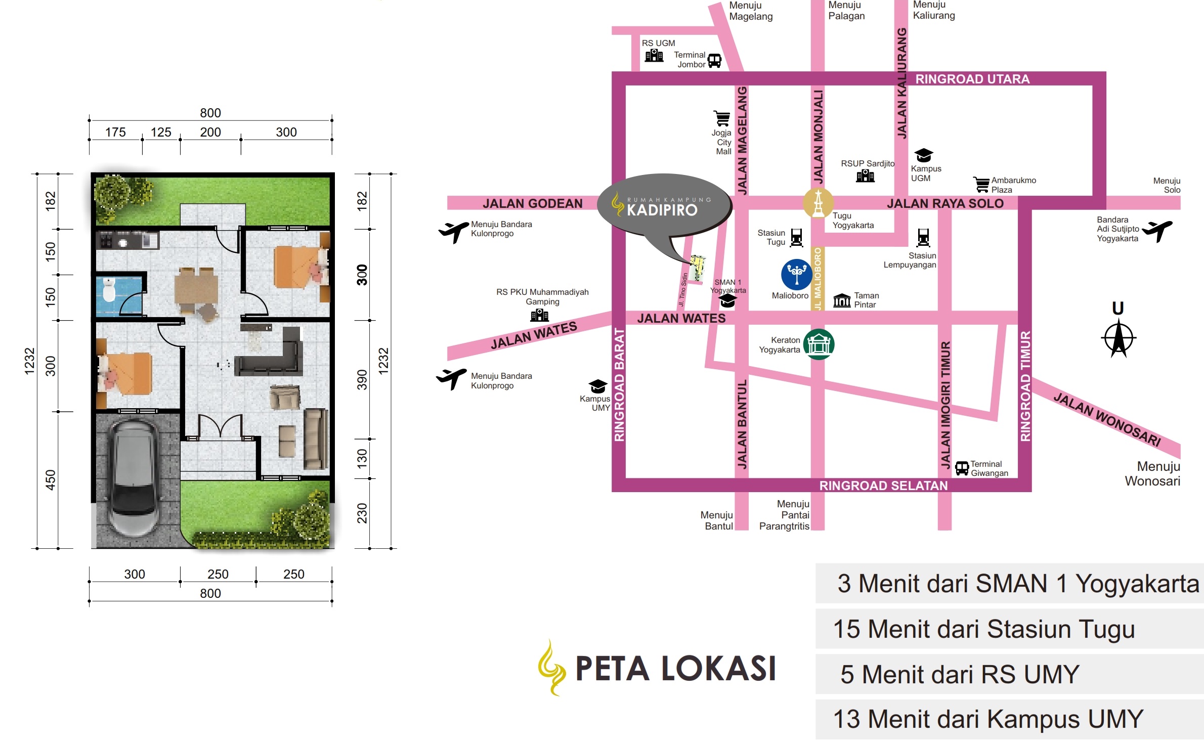 – 4,3 km (12 menit) ke kampus Universitas Muhammadiyah Yogyakarta (UMY)