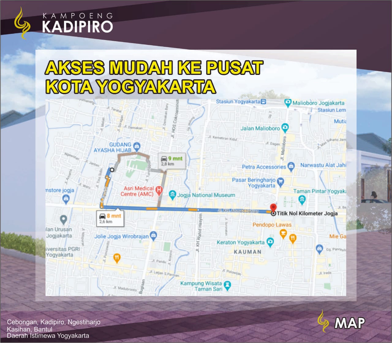– 1,7 km (5 menit) menuju kampus Universitas PGRI Yogyakarta