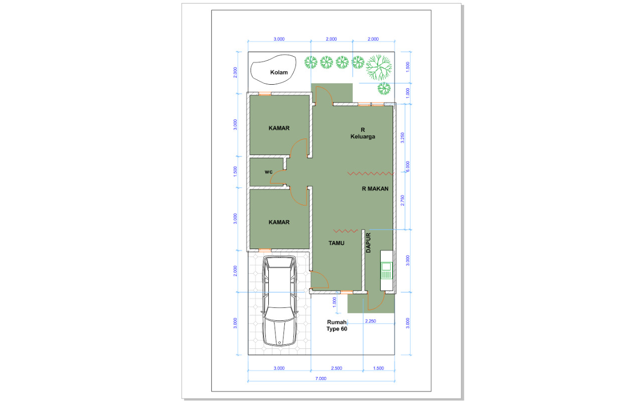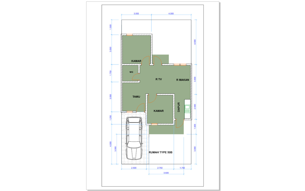 – Ruang Tamu, Ruang Keluarga, Dapur, Carport, Teras