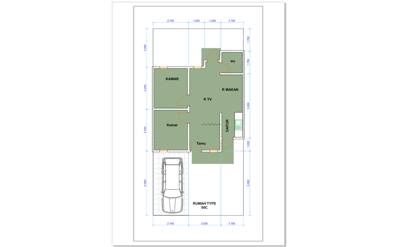 Type 50 : Bangunan 1 lantai, 2 kamar Tidur
