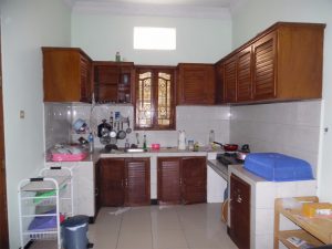 – Dapur dengan kitchen set, kompor, tabung gas dan perlengkapan masak